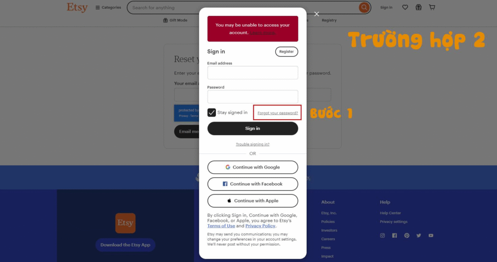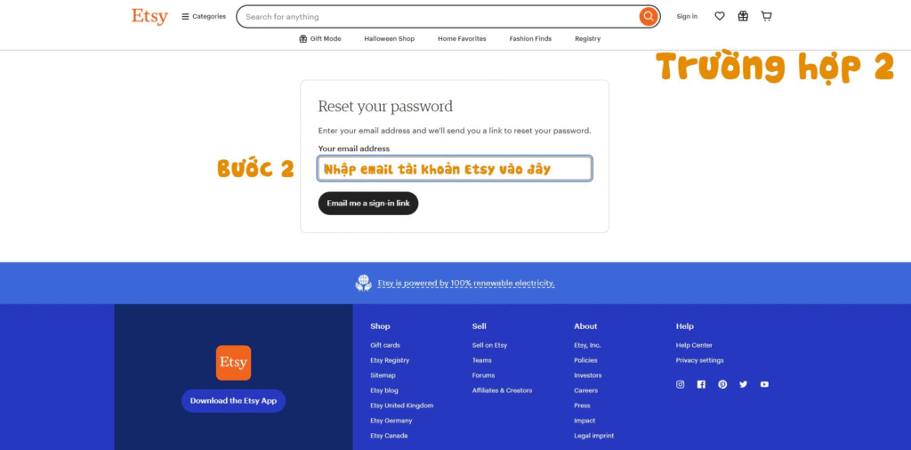 Bước 3: Nhập email tài khoản Etsy của bạn và chọn “Email me a sign-in link”