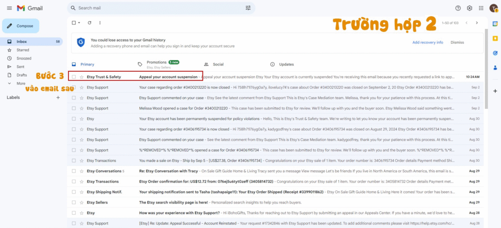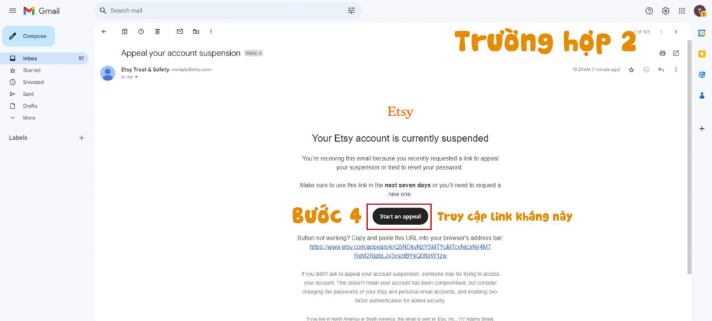 Bước 4: Truy cập email trên và kiểm tra email, bạn sẽ nhận được 1 link kháng từ Etsy Trust & Safety