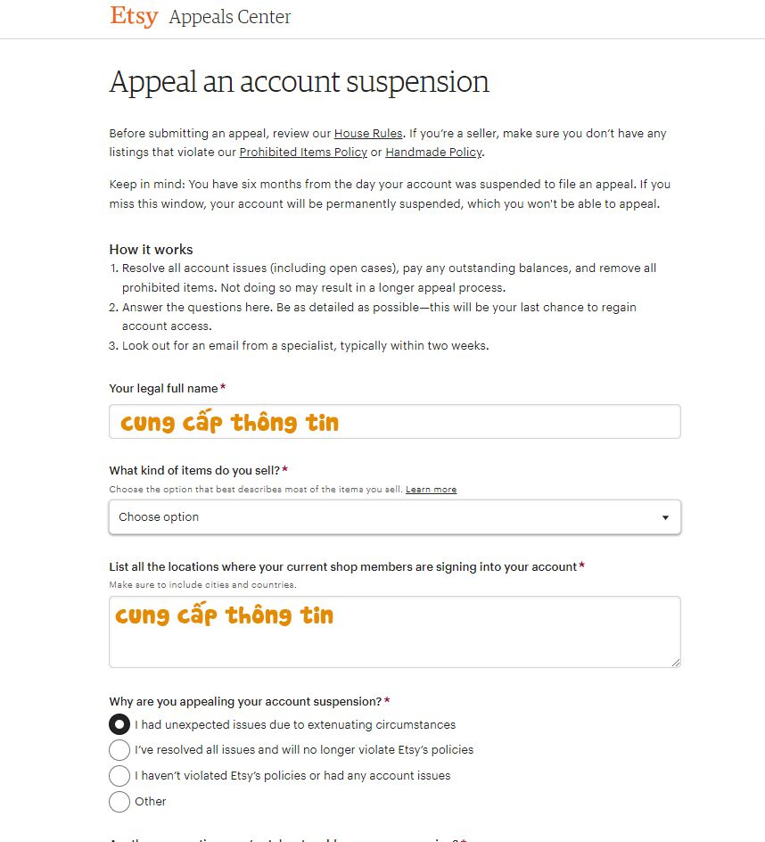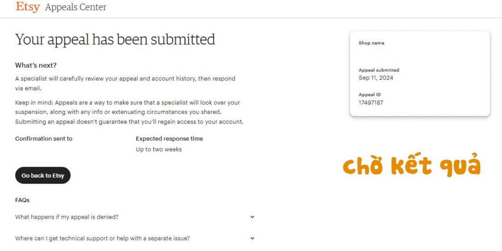 • Thất bại: Bạn sẽ nhận dc email tiêu đề Re: An important message about your Etsy account