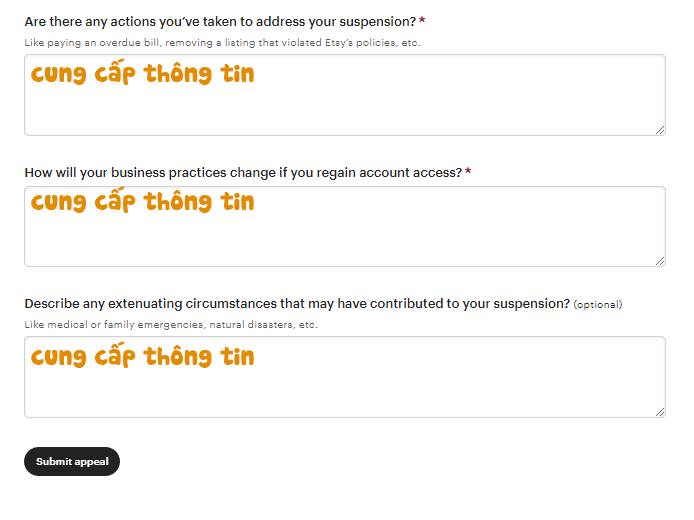 Sau khi điền đầy đủ hết các dòng, các bạn chọn “Submit appeal“. Kết quả kháng sẽ được gửi cho các bạn trong 24 giờ. Thời gian này thì khoảng 7,8 tiếng là sẽ có email reply thông báo kết quả.